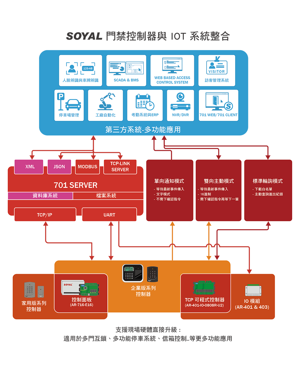 ◎SOYAL TCP-Linker Server提供跨系統 JSON/XML/Modbus整合介面